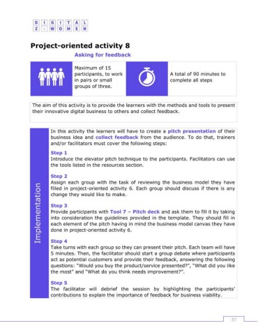 Provide participants with Tool 7 – Pitch deck and ask them to fill it by taking