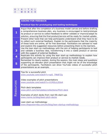 of the participants. Facilitators can show YouTube videos of successful pitch