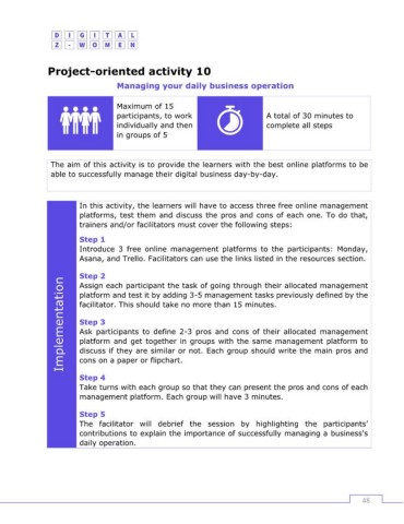 Asana, and Trello. Facilitators can use the links listed in the resources section.