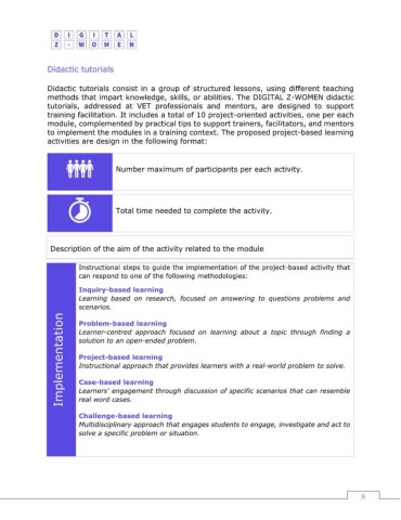 methods that impart knowledge, skills, or abilities. The DIGITAL Z-WOMEN didactic
