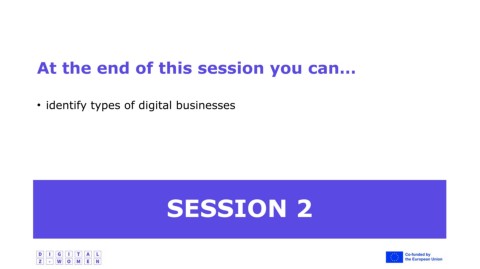 At the end of this session you can… • identify types of digital businesses SESSION 2