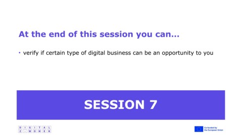 At the end of this session you can… • verify if certain type of digital business can be an opportunity to you SESSION 7