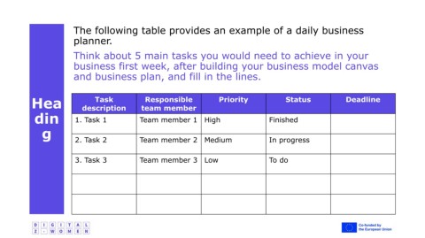 Think about 5 main tasks you would need to achieve in your