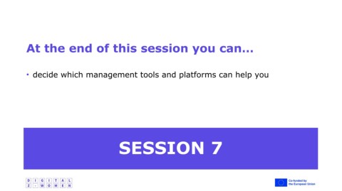 At the end of this session you can… • decide which management tools and platforms can help you SESSION 7