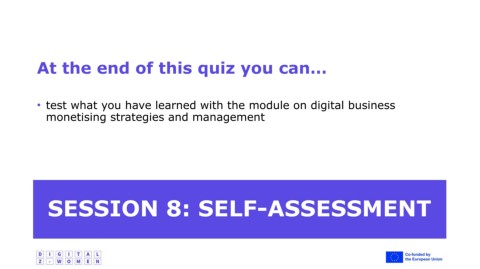 At the end of this quiz you can… • test what you have learned with the module on digital business monetising strategies and management SESSION 8: SELF-ASSESSMENT