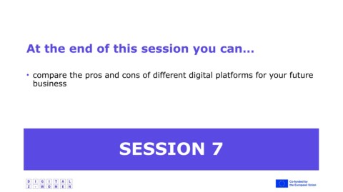 At the end of this session you can… • compare the pros and cons of different digital platforms for your future business SESSION 7