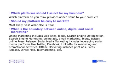 • Which platforms should I select for my business?
