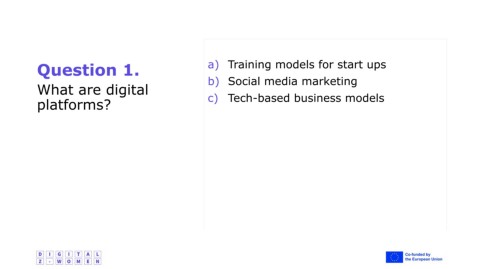 Question 1. a) Training models for start ups What are digital b) Social media marketing platforms? c) Tech-based business models