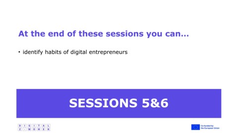 At the end of these sessions you can… • identify habits of digital entrepreneurs SESSIONS 5&6