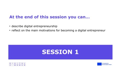 At the end of this session you can… • describe digital entrepreneurship • reflect on the main motivations for becoming a digital entrepreneur SESSION 1