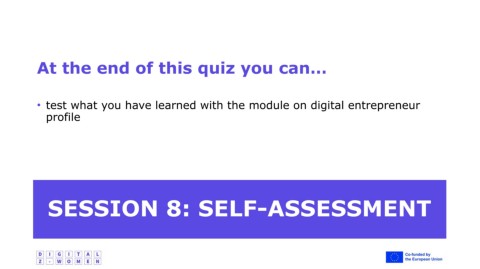 At the end of this quiz you can… • test what you have learned with the module on digital entrepreneur profile SESSION 8: SELF-ASSESSMENT