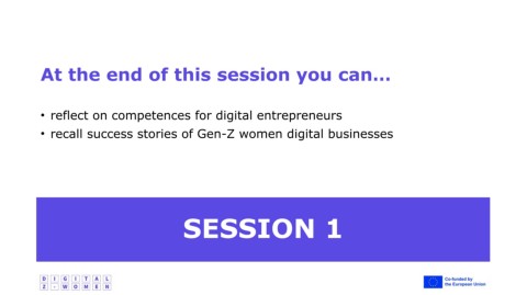 At the end of this session you can… • reflect on competences for digital entrepreneurs • recall success stories of Gen-Z women digital businesses SESSION 1