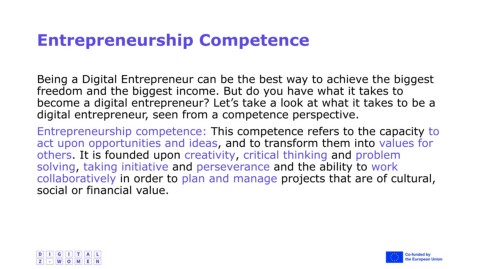 Entrepreneurship competence: This competence refers to the capacity to