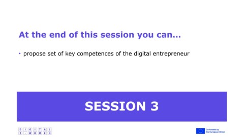 At the end of this session you can… • propose set of key competences of the digital entrepreneur SESSION 3