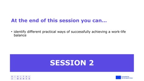 At the end of this session you can… • identify different practical ways of successfully achieving a work-life balance SESSION 2