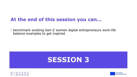 At the end of this session you can… • benchmark existing Gen-Z women digital entrepreneurs work-life balance examples to get inspired SESSION 3