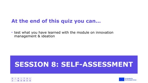 At the end of this quiz you can… • test what you have learned with the module on innovation management & ideation SESSION 8: SELF-ASSESSMENT