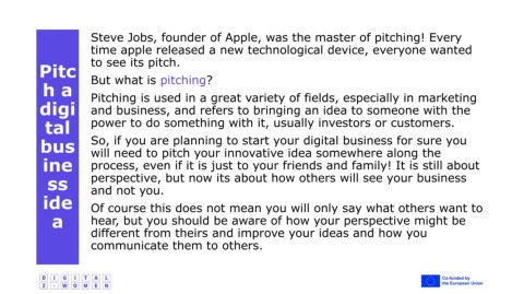 digi and business, and refers to bringing an idea to someone with the