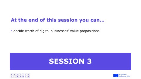 At the end of this session you can… • decide worth of digital businesses’ value propositions SESSION 3