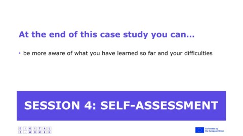 At the end of this case study you can… • be more aware of what you have learned so far and your difficulties SESSION 4: SELF-ASSESSMENT