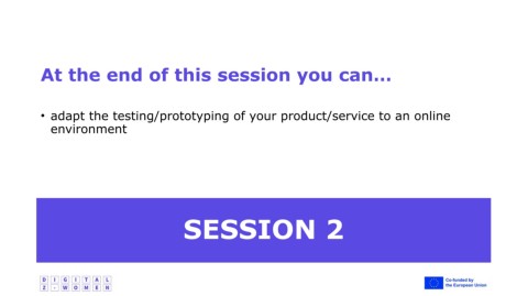At the end of this session you can… • adapt the testing/prototyping of your product/service to an online environment SESSION 2
