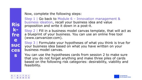 k- Step 2 | Fill in a business model canvas template, that will act as