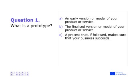 Question 1. a) An early version or model of your product or service. What is a prototype? b) The finalised version or model of your product or service. c) A process that, if followed, makes sure that your business succeeds.