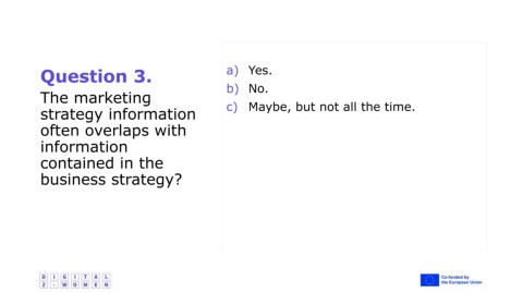 Question 3. a) Yes. The marketing b) No. strategy information c) Maybe, but not all the time. often overlaps with information contained in the business strategy?